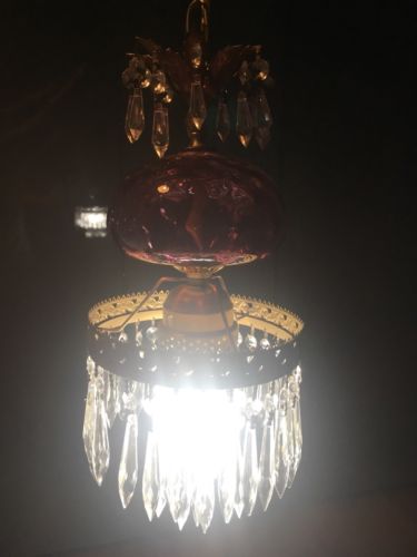 Vintage Rose & Clear Glass Swag Lamp with long chain and cord