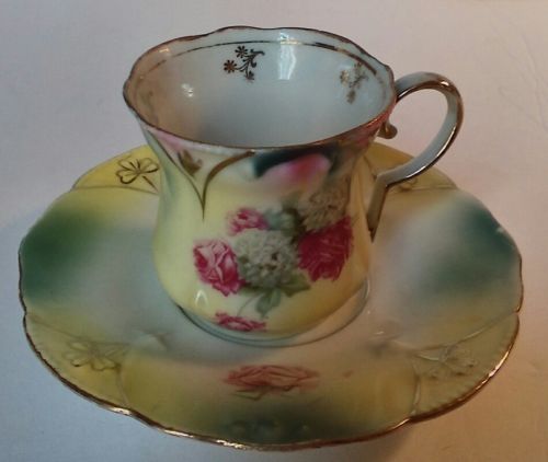 Delicate Antique RS Prussia Porcelain Tea Cup and Saucer, Red Mark