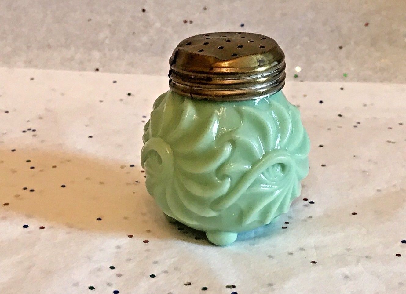 Title (ebay affiliate link): Victorian Salt Shaker -Round Peg Leg- Opaque Green - Unknown Maker - Very Scarce