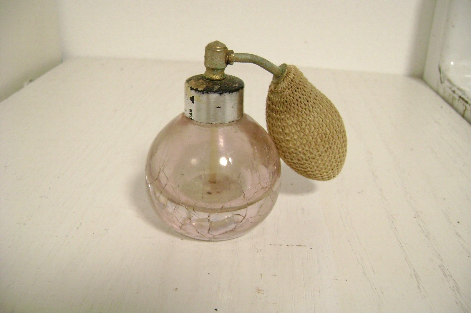 Title (ebay affiliate link): VINTAGE PERFUME BOTTLE ATOMIZER IRICE NY 5 CRACKLED GLASS PINKISH TINT ORIGINAL