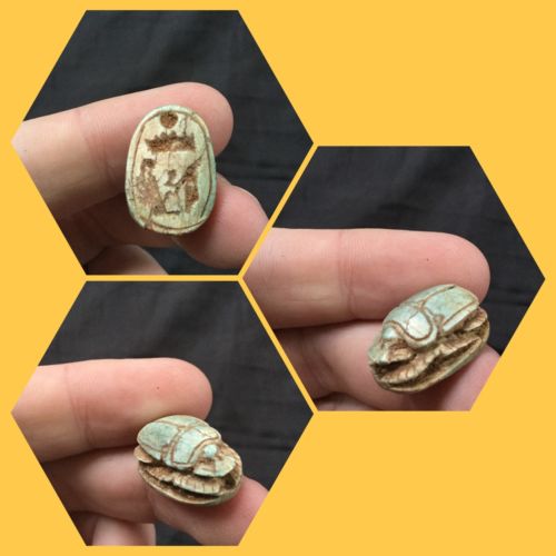 Title (ebay affiliate link): ANCIENT EGYPTIAN FAIENCE SCARAB BEETLE WITH HIEROGLYPHS, MIDDLE KINGDOM.