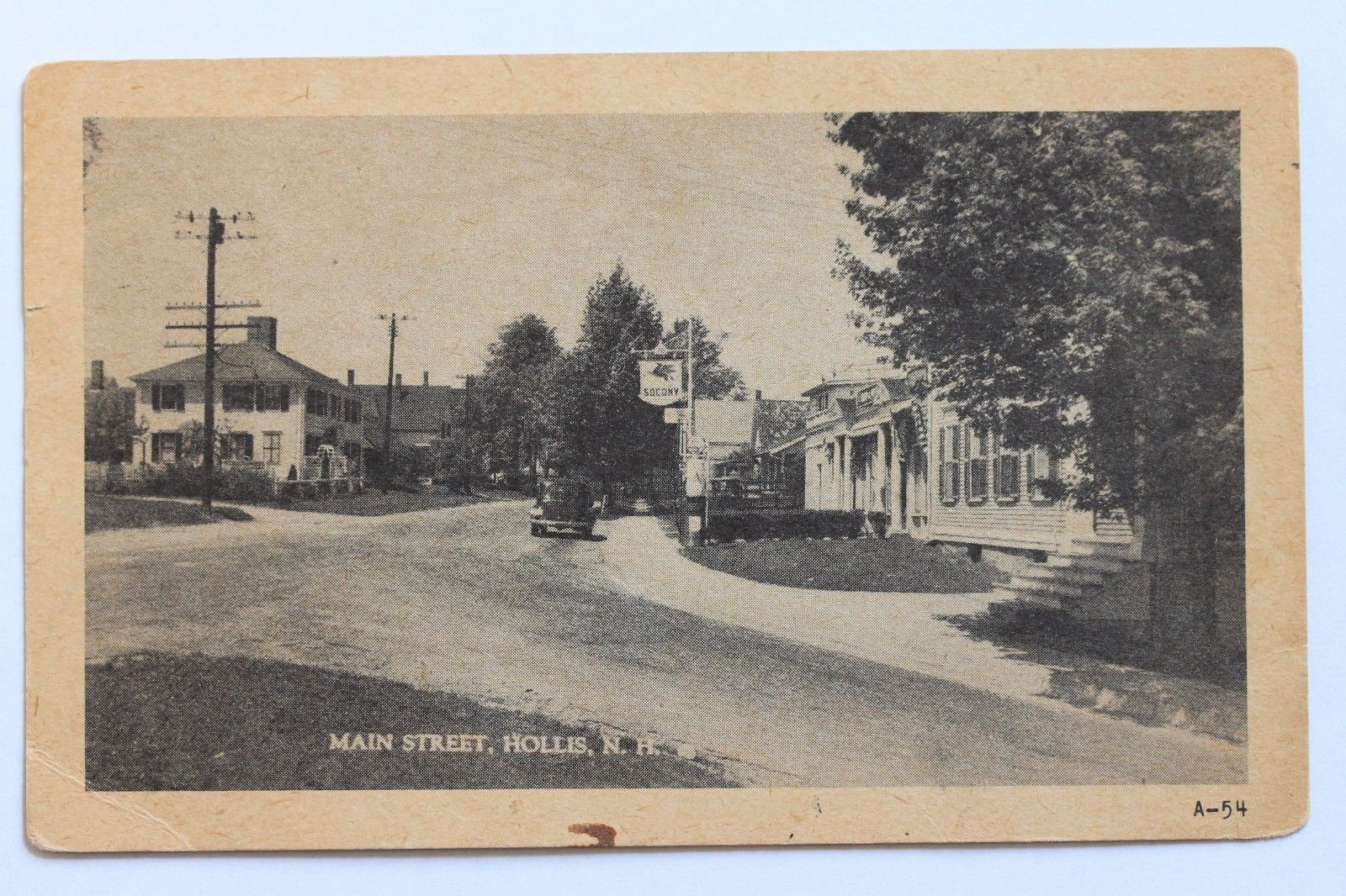 Old postcard MAIN STREET, HOLLIS, N.H., 1940s