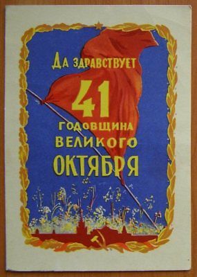 Title (ebay affiliate link): 1958 SOVIET COMMUNISM POSTCARD the 41st anniverrsary of Great October com 008c