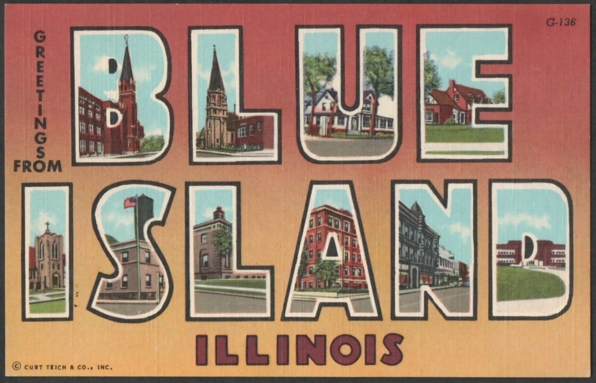 Title (ebay affiliate link): 1950 Blue Island Illinois Large Letter Curt Teich Selected Views
