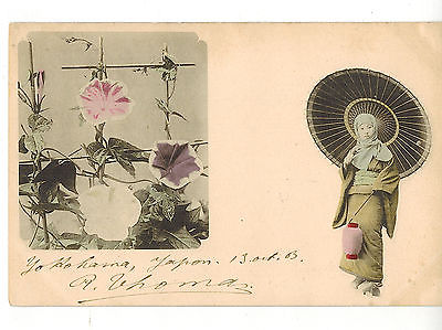 JAPAN 1903 ANTIQUE POSTCARD CPA YOKOHAMA JAPAN : YOUNG LADY AND FLOWERS