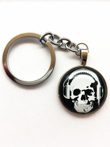 Title (ebay affiliate link): Vintage skull Keychain Cabochon Tibetan silver Glass Metal Key Ring