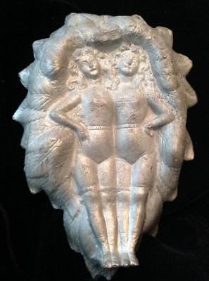 Antique White Pot Metal Naughty Ashtray Twin Sisters Girls Cherries Ladies