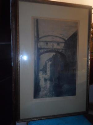 Antique LG.Gilt Wood Gesso Framed Signed George Senseney Etching Jacobi Re Proof
