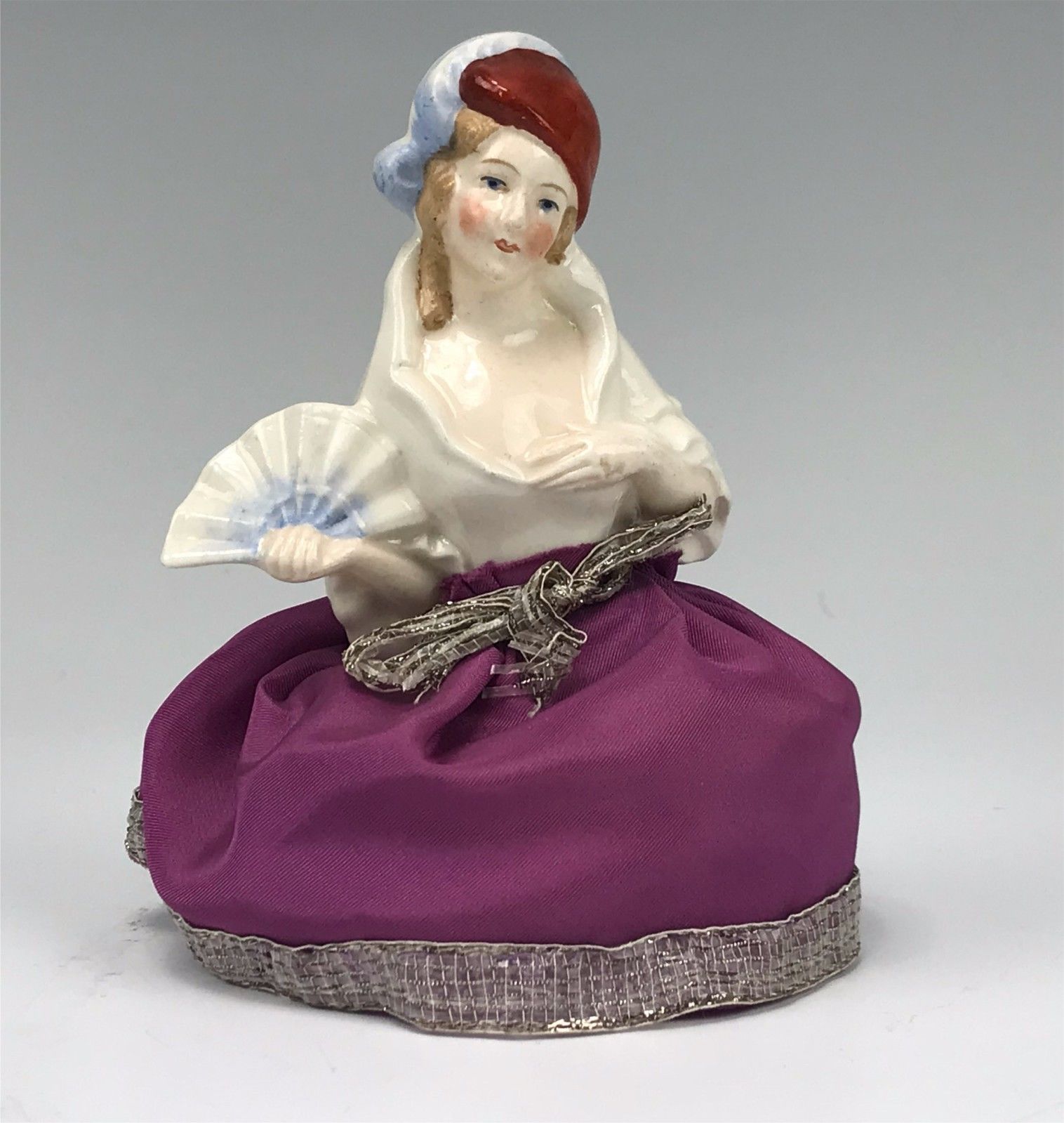 Title (ebay affiliate link): Antique German Half Doll #4345 With Skirt, Holding Fan w/ Hat Pincushion Doll