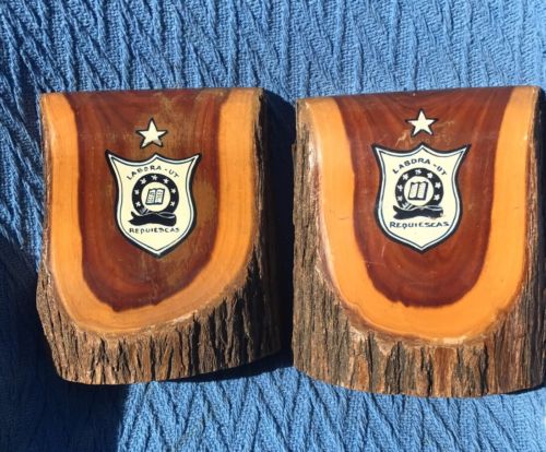 Pair Mulga Wood Bookends With Caulfield Grammar Motto