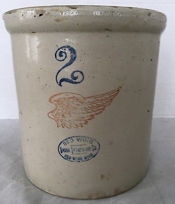 LARGE VINTAGE RED WING CERAMIC GLAZED CROCK~9 1/2" TALL~ AS FOUND