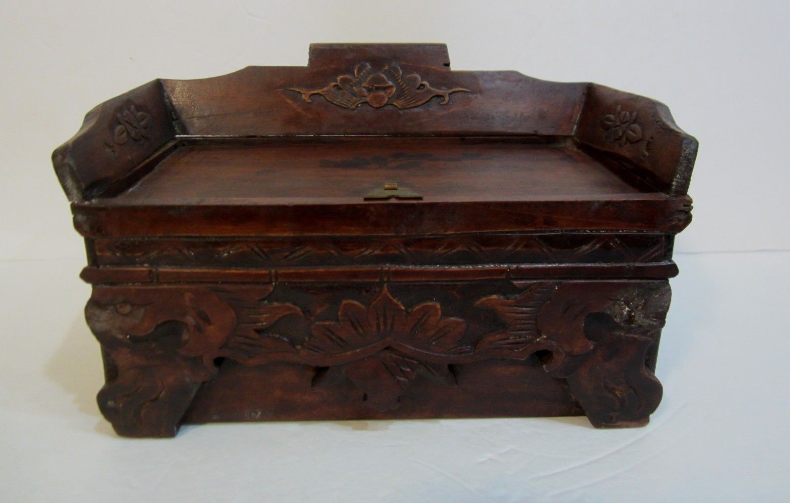 Title (ebay affiliate link): Antique primitive handcarved wooden dovetailed jewelry trinket box side drawer