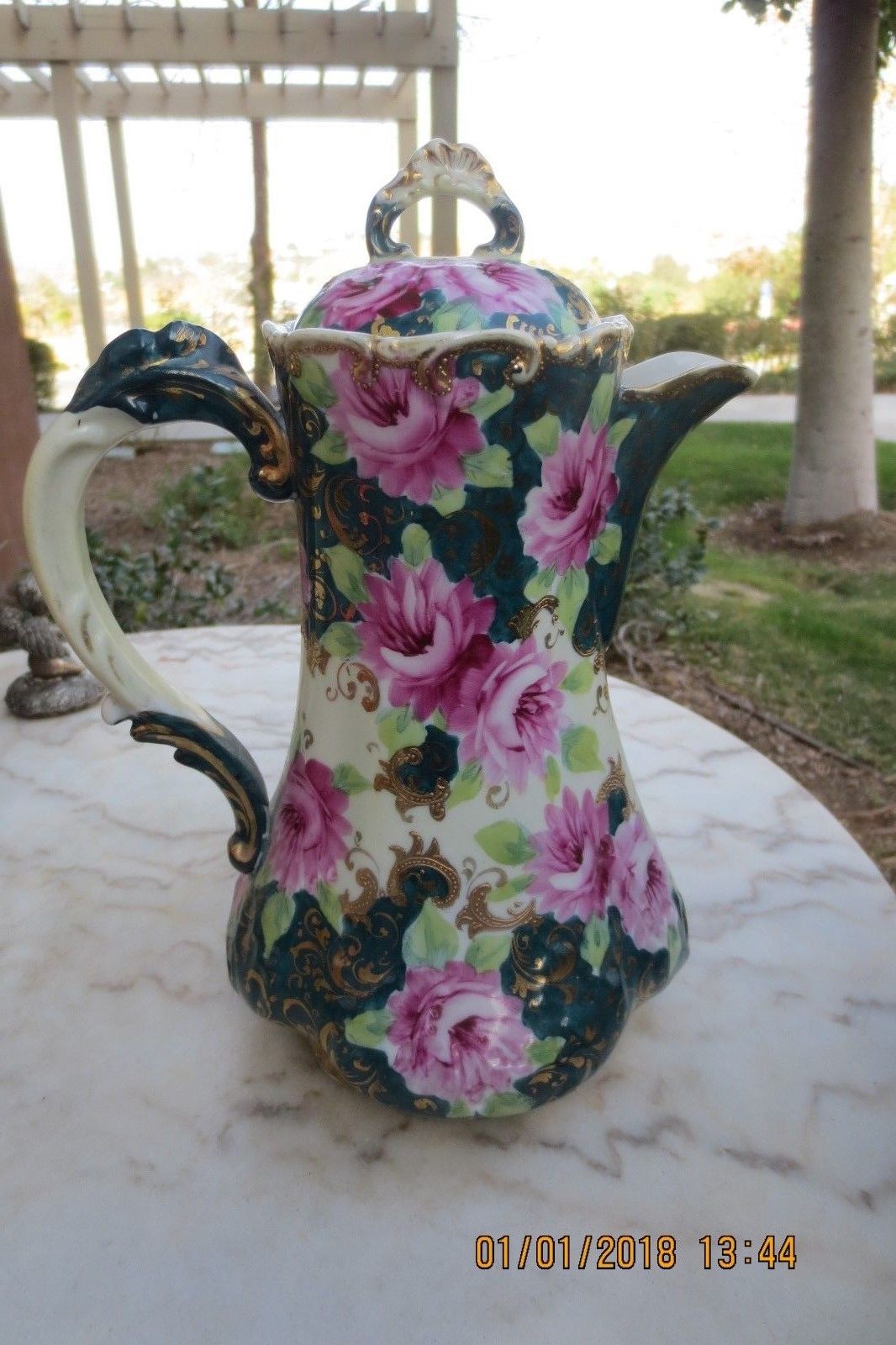 ANTIQUE ATTRACTIVE HAND DECORATED CHOCOLATE/TEA POT UNMARKED