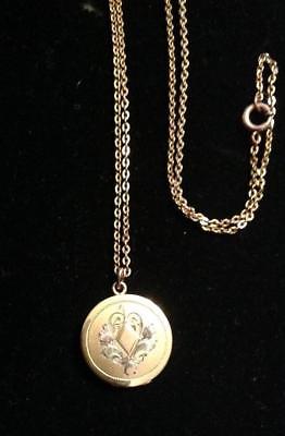 Antique LM & Co. Victorian Gold Plated Filled? Photo Locket Pendant Necklace