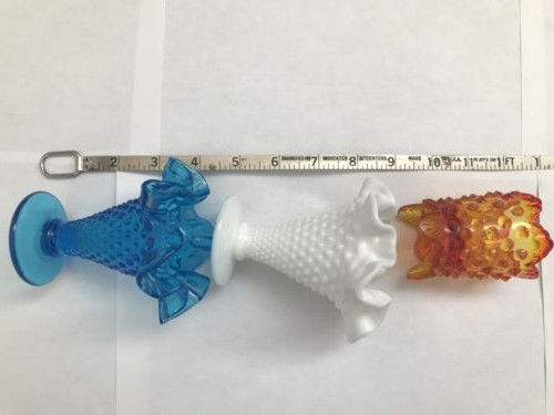 Title (ebay affiliate link): 3 Pieces Vintage Fenton Hobnail Vase Votive Milk Glass - Blue - Orange Glass