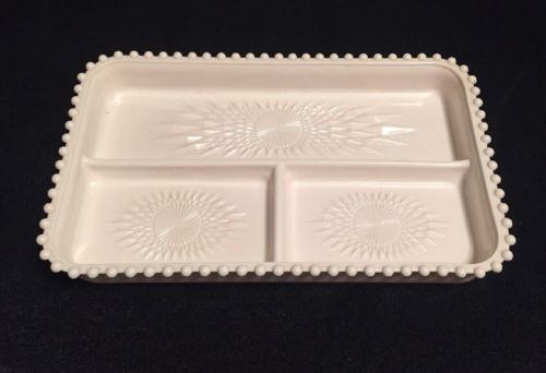 Title (ebay affiliate link): Vintage Jeannette Pink Milk Glass Starburst Dresser Vanity Tray 12 x 8"