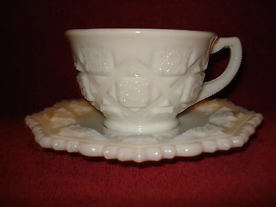 WESTMORELAND MILK GLASS OLD QUILT PATTERN CUP AND SAUCER