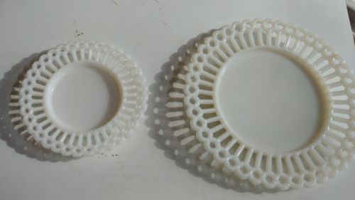 Title (ebay affiliate link): 2 UNUSUAL White Milk Glass Pierced Lace Edge Plate Round 8 " & 5 1/2 "
