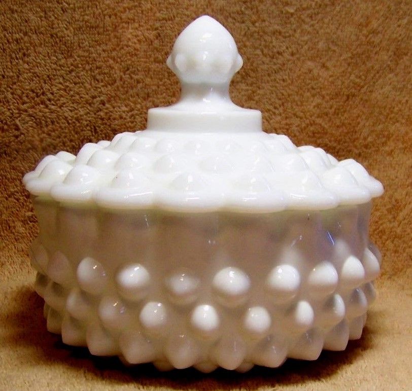 Beautiful "WHITE MILK GLASS HOBNAIL CANDY DISH with LID"