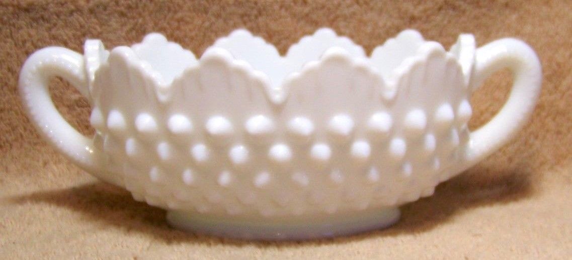 FENTON "WHITE MILK GLASS HOBNAIL small OVAL BOWL""