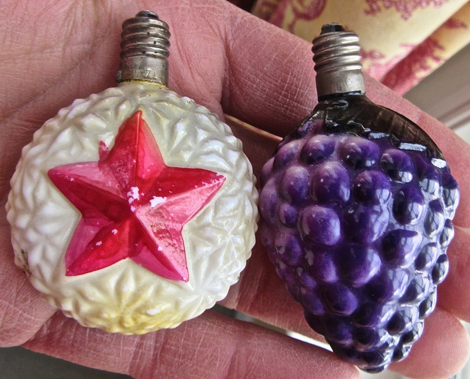 Title (ebay affiliate link): STARS & GRAPES antique MILK GLASS CHRISTMAS TREE LIGHT vintage ORNAMENT figural