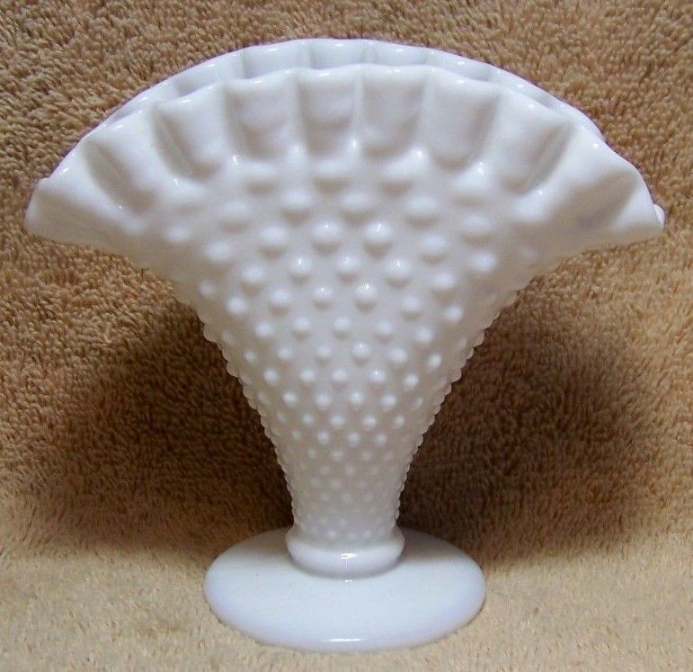 Lovely "WHITE MILK GLASS HOBNAIL FAN VASE"