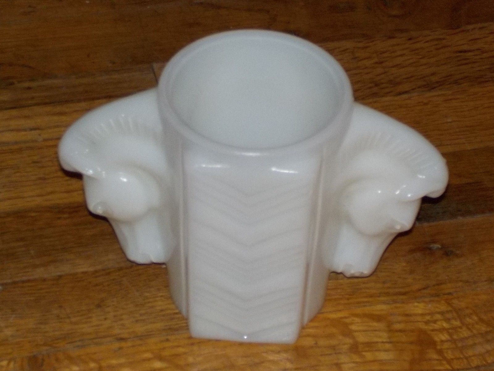 Title (ebay affiliate link): VINTAGE MACBETH EVANS WHITE MILK GLASS VASE, SHAVING CUP, DOUBLE HORSE HEADS,