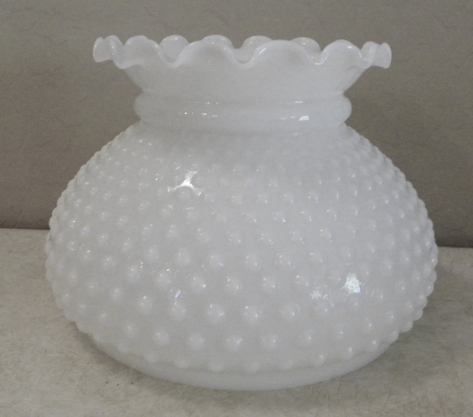 VINTAGE MILK GLASS HOBNAIL RUFFLED TOP LAMP SHADE 6 3/4" FITTER