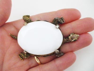Title (ebay affiliate link): PRETTY VINTAGE BIG TURTLE PIN W/BIG MILK GLASS STONE & GREEN RHINESTONE EYES