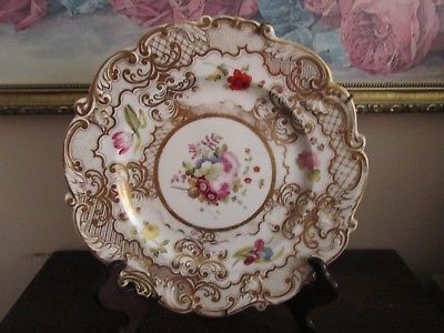 Antique Chamberlain Worcester England Porcelain Hand Painted Plate Flowers Gold