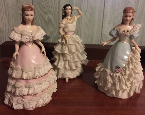 Vintage Lee Wollard Figurine Porcelain Lace Ladies Lot of 3