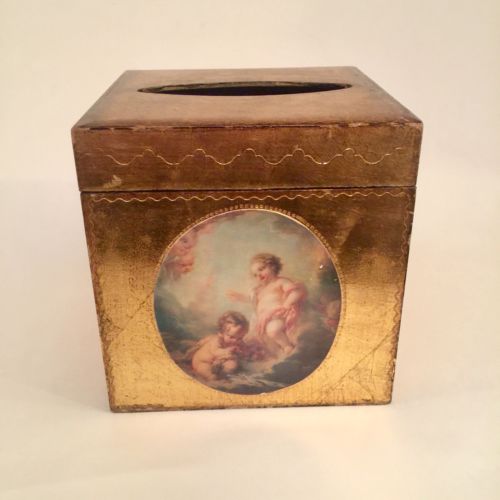 Title (ebay affiliate link): Vintage Neiman Marcus Gold Gilt Italian Florentine Tole Wood Cube Tissue Box