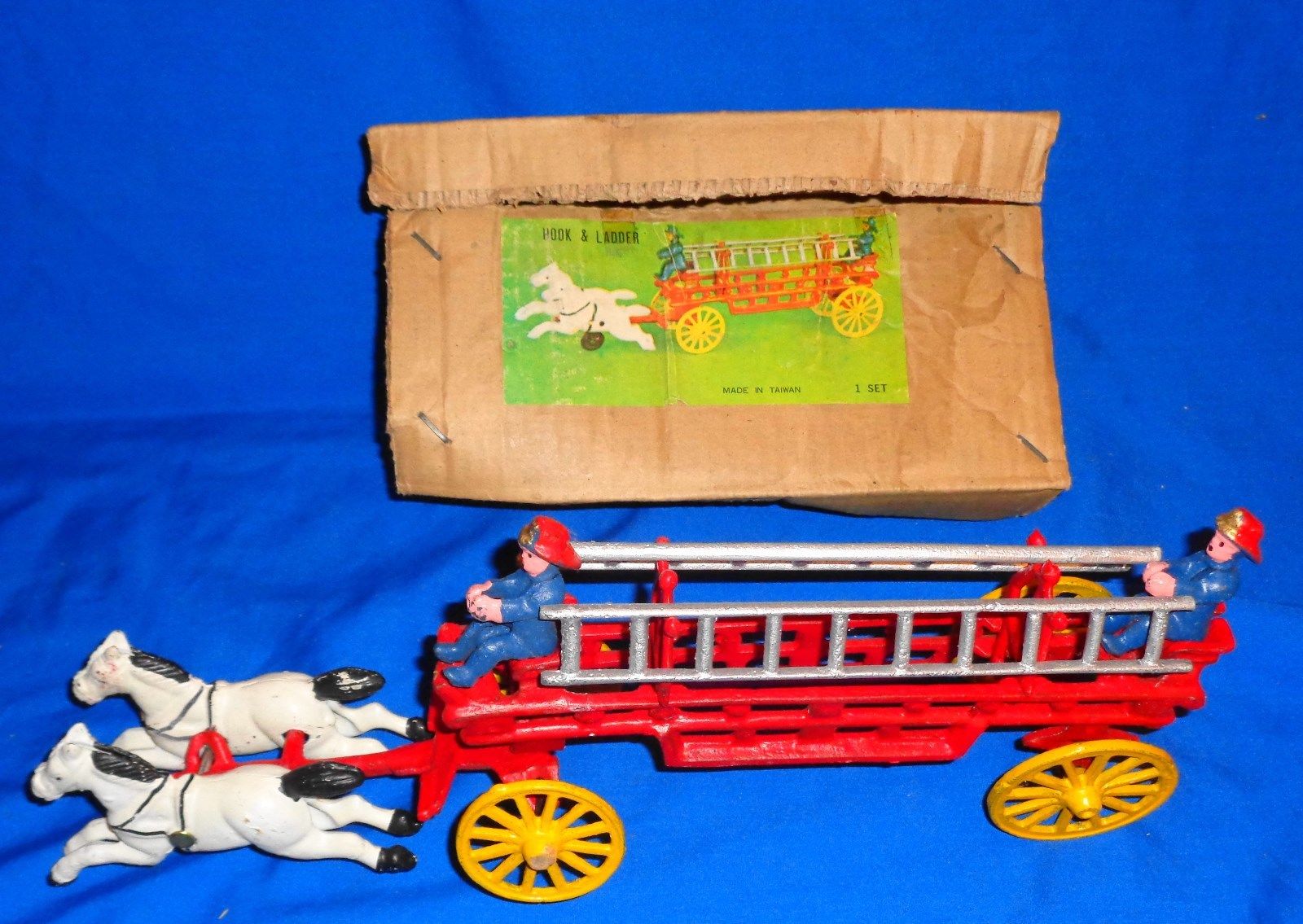 Title (ebay affiliate link): Antique Cast Iron Horse Drawn Hook & Ladder Fire Truck w/2 Men Orginal Paint !!!