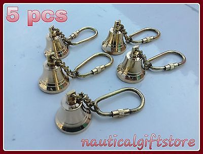 Brass Antique Bell Keychain Marine Nautical Key Ring lot of 5pcs
