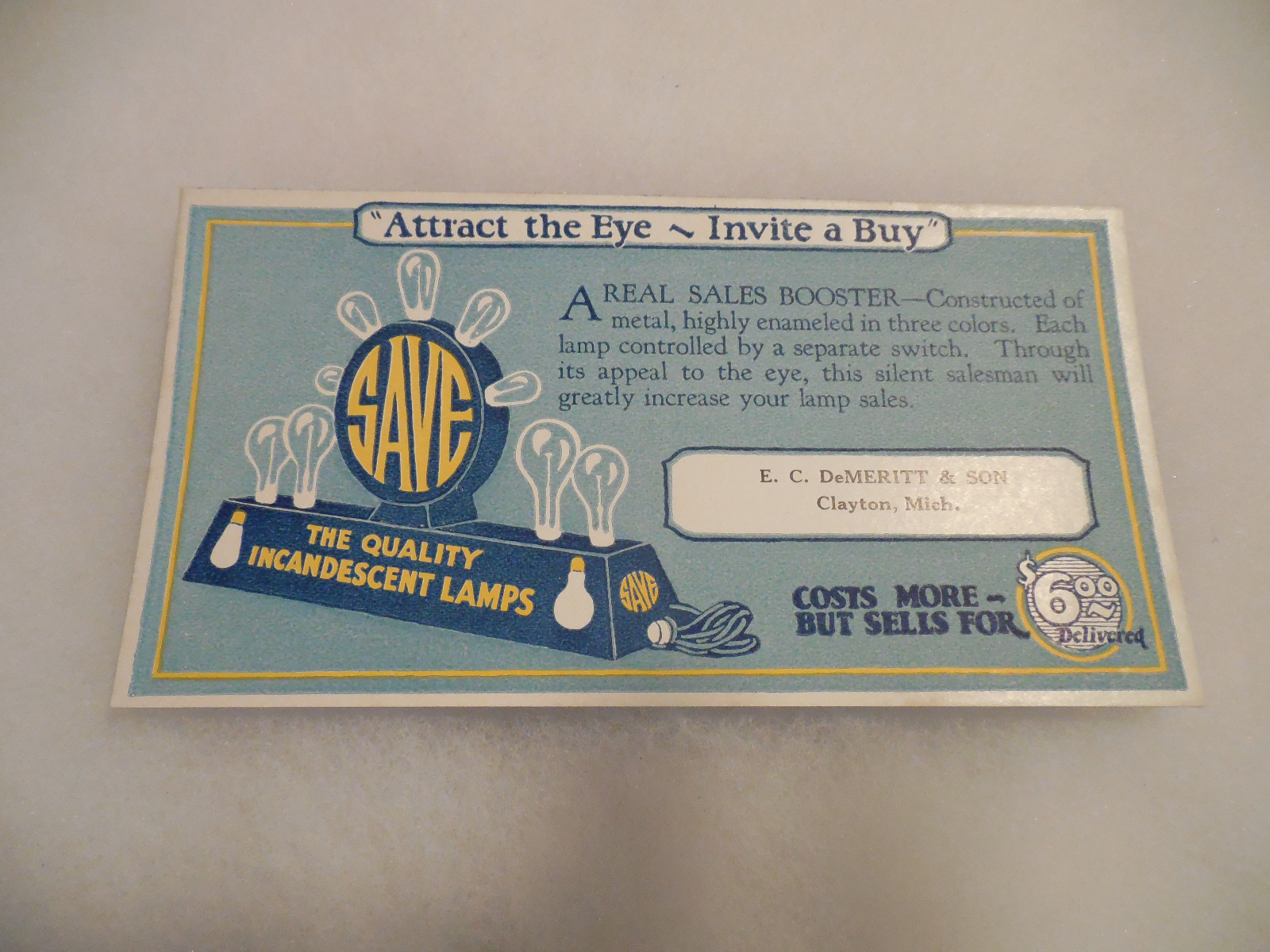 Title (ebay affiliate link): Vintage Advertising Ink Blotter Incandescent Lamps E. C. DeMeritt & Son Michigan