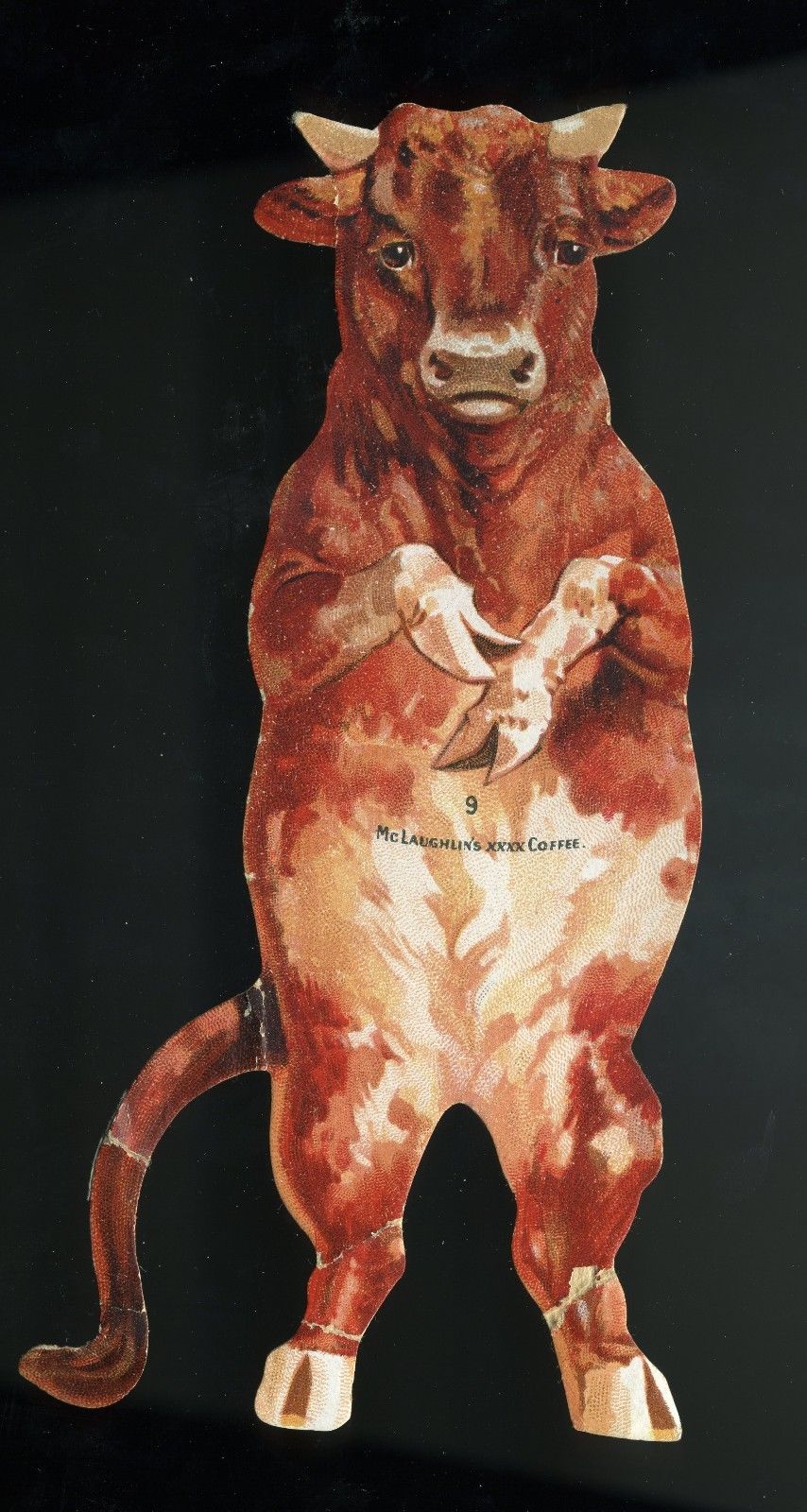 VICTORIAN DIE CUT PAPER DOLL BULL WITH FOLDED HOOVES, McLAUGHLIN COFFEE