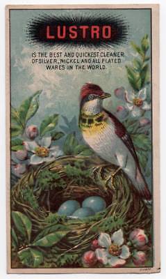 Victorian trade card LUSTRO Stove Polish Superb litho of Bird & nest with eggs