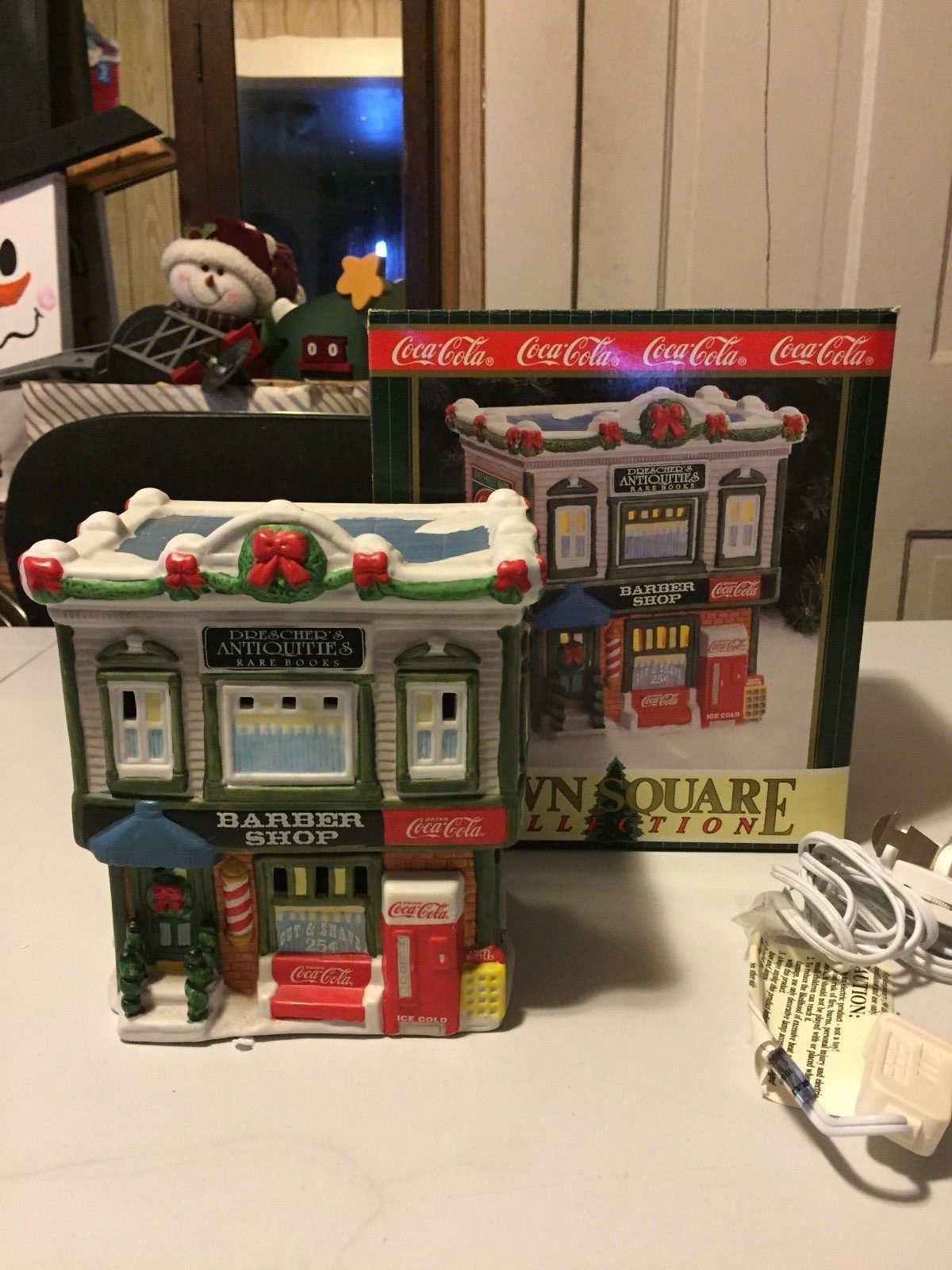 Title (ebay affiliate link): COCA COLA COKE TOWN SQUARE COLLECTION -TOWN BARBER SHOP LIGHTED 1996