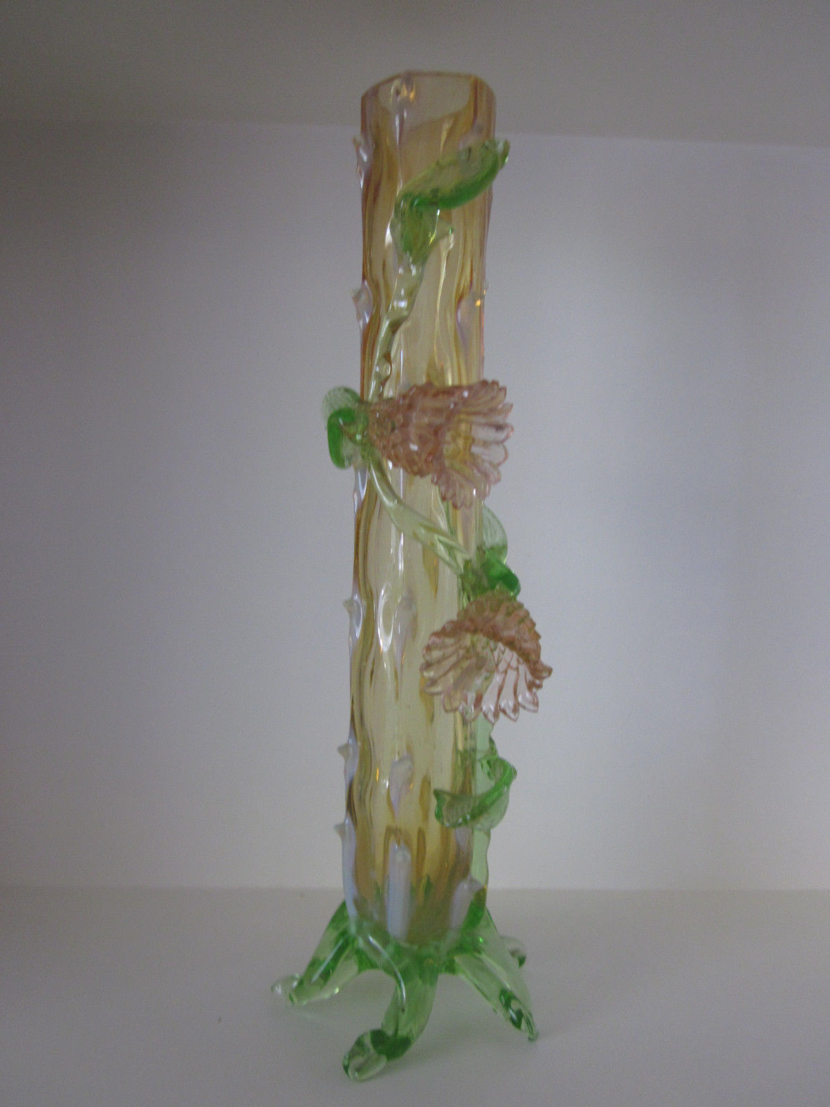 Title (ebay affiliate link): ANTIQUE TALL STEVENS AND WILLIAMS URANIUM & VASELINE ART GLASS VASE A/F