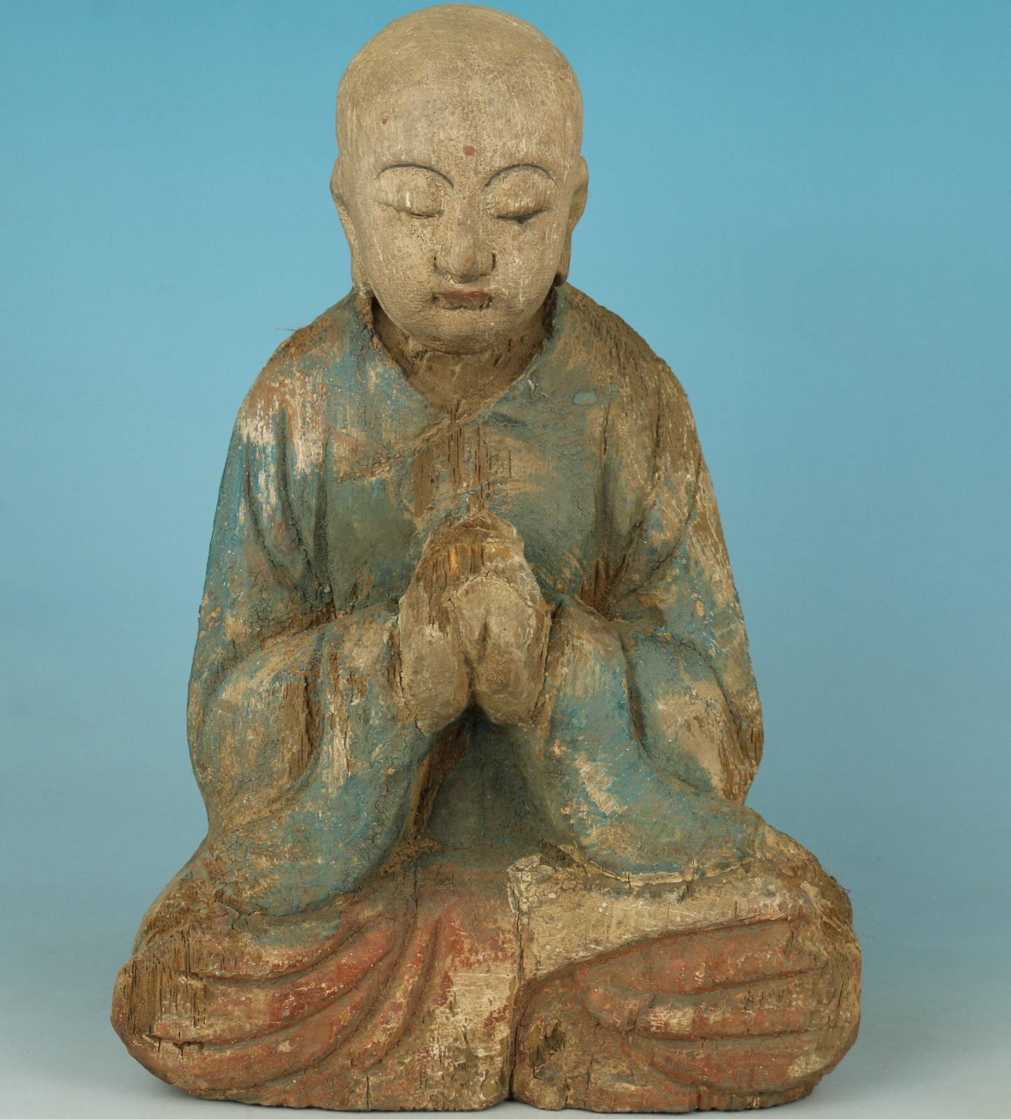Vintage Wood Carved Buddha Monk Statue Figure