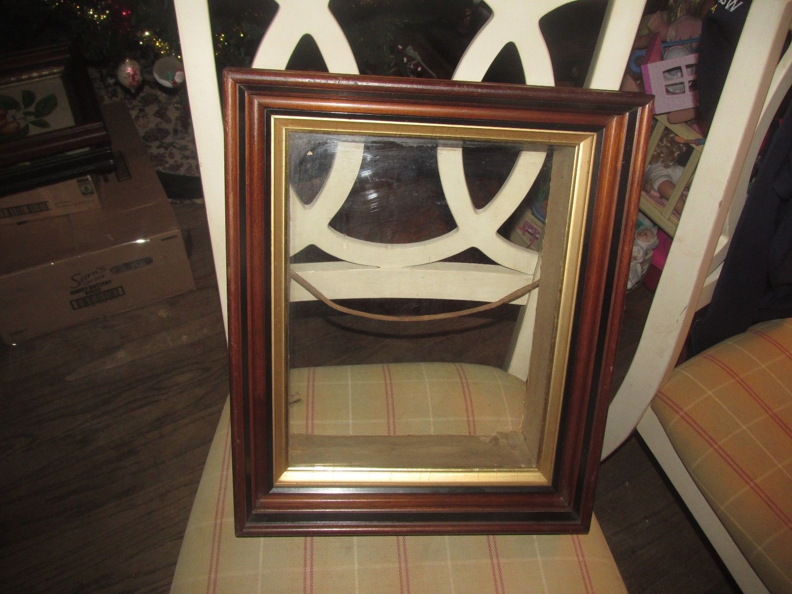 Victorian deep shadow box walnut hanging frame with gold gilt