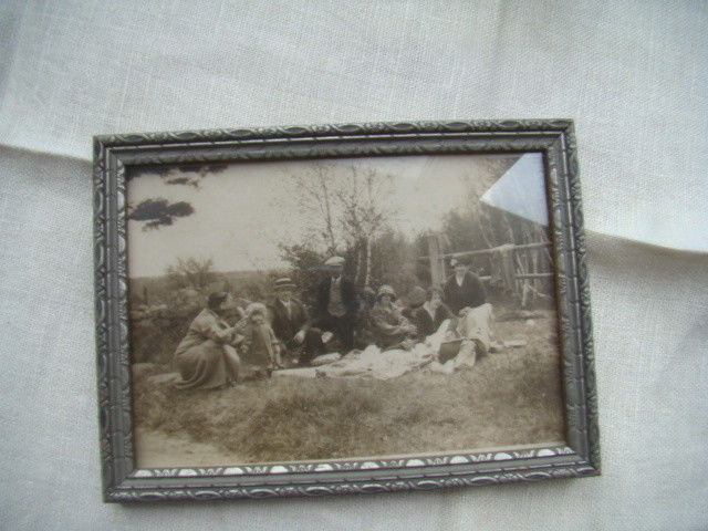 Title (ebay affiliate link): Vintage Antique Wooden Picture Frame 5" x 7" Family on picnic picture Gray
