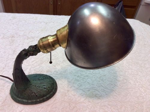 Antique Art Deco Cast Iron Desk Task Lamp HUBBELL Indusrtrial Shade Handel Era