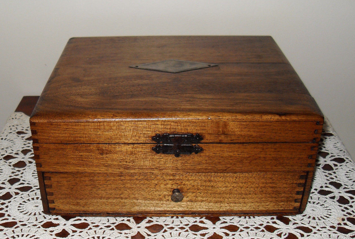 VTG Wooden Ash Wood Cigar Box Hinged Lid Drawer Gentleman''s Chest Finger Joint