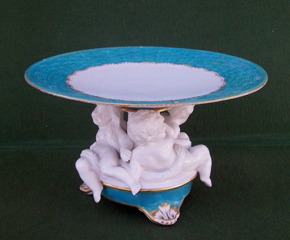 1871 Antique 19th Porcelain Cake Plate Tazza Cherubs Pedestal Base