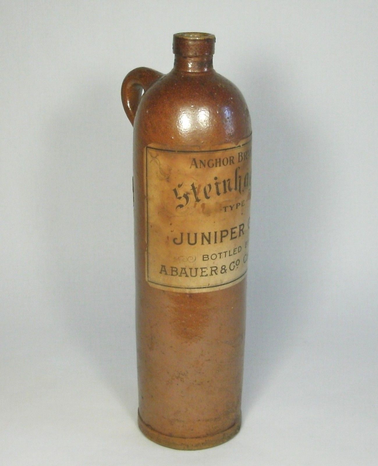 w Antique ANCHOR BRAND Steinhager Type JUNIPER GIN STONEWARE BOTTLE A Bauer Co