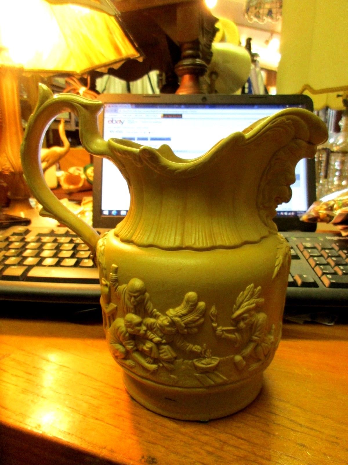 Early Rare Salt Glaze Pitcher with Monkeys English Repaired