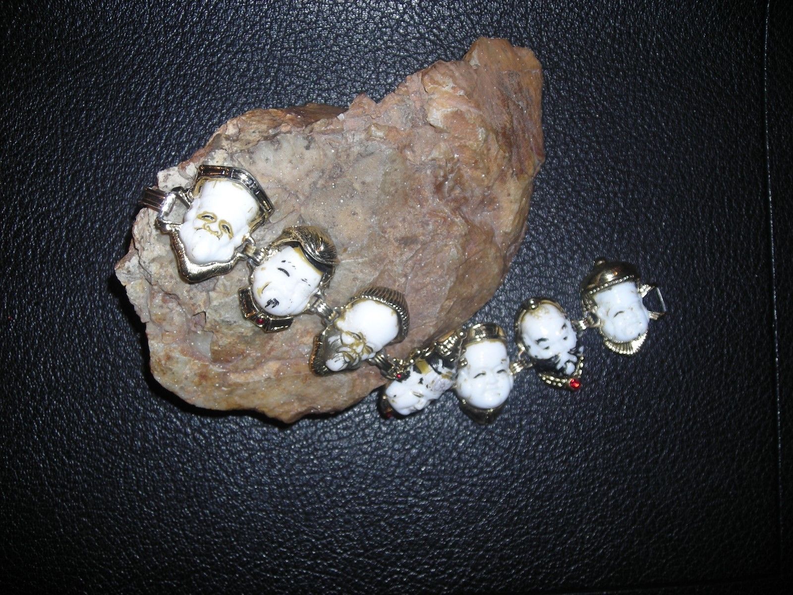 Title (ebay affiliate link): ~VINTAGE SELRO 7 KING IMMORTAL FACE MILK GLASS LINK BRACELET & RED RHINESTONES~