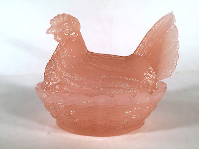 Pink Opaline Milk Glass Chicken Hen On Nest Covered Dish