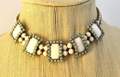 Sale! Vintage Milk Glass White & Blue Bead Necklace